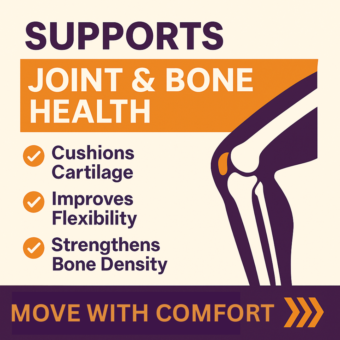 Hydrolysed Type II and V collagen peptides travel straight to your joints, rebuilding the springy cartilage and connective tissues that let them glide without pain. Types I and X go deeper, reinforcing the bone matrix itself to restore density and long-term strength.